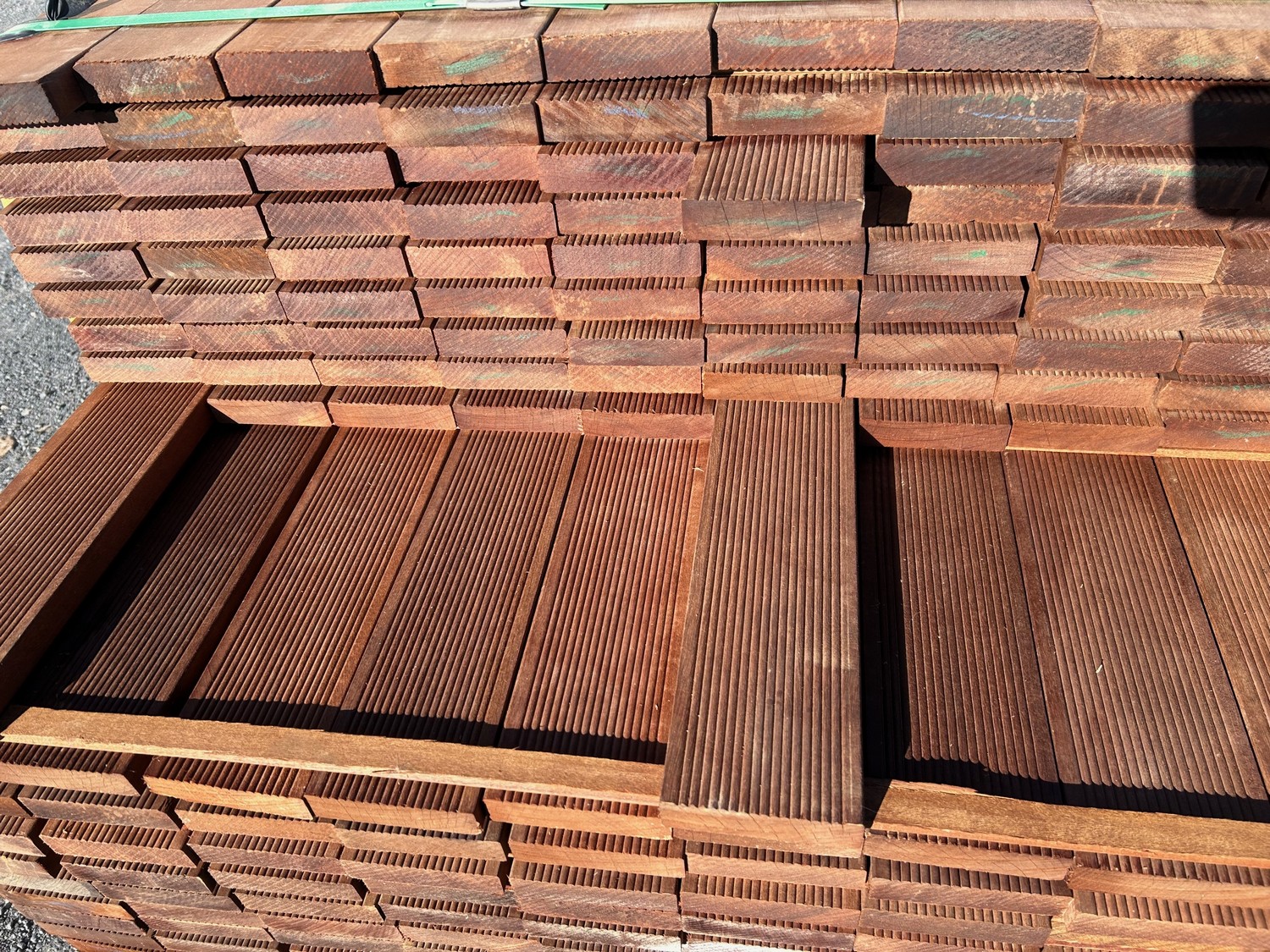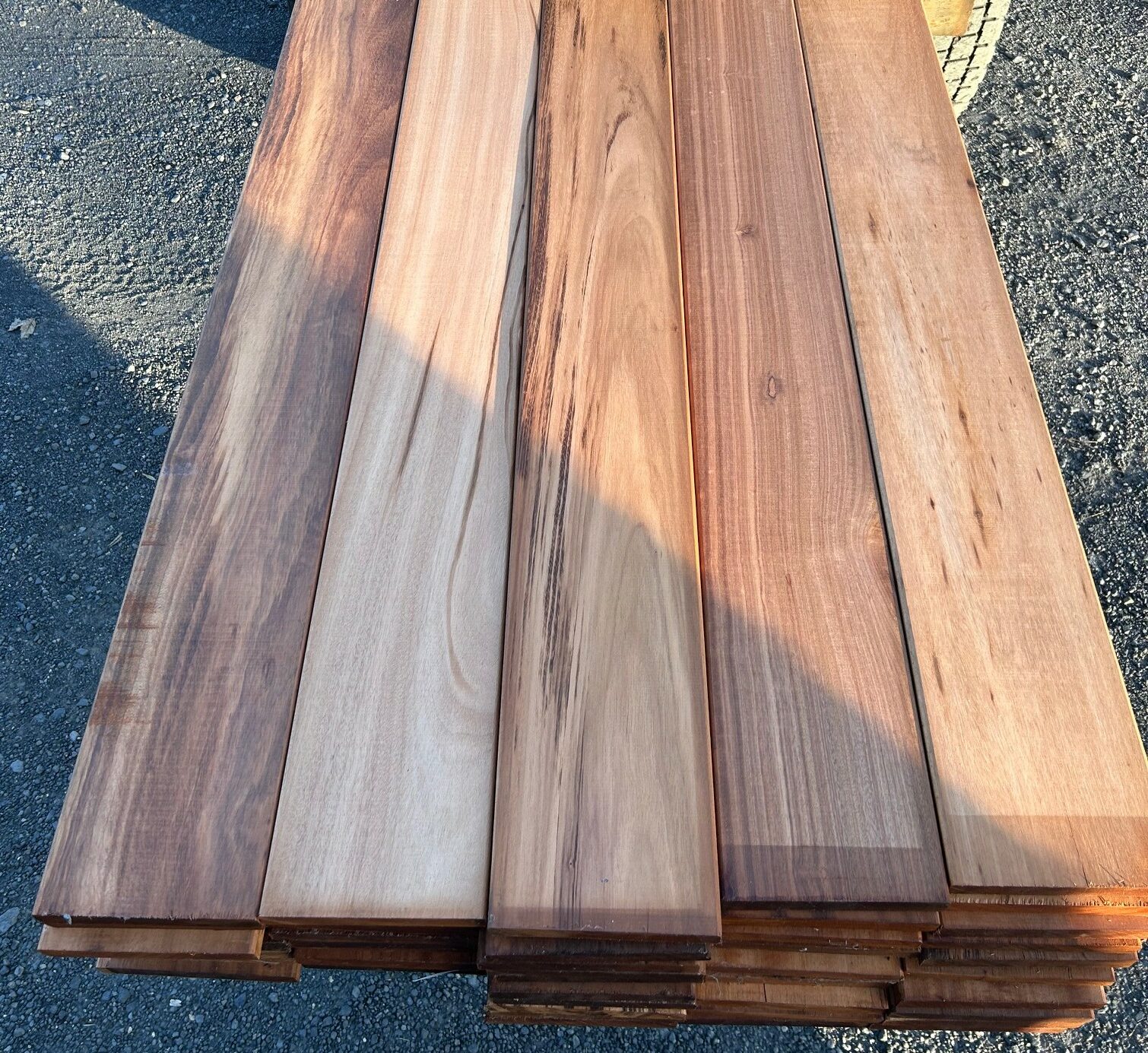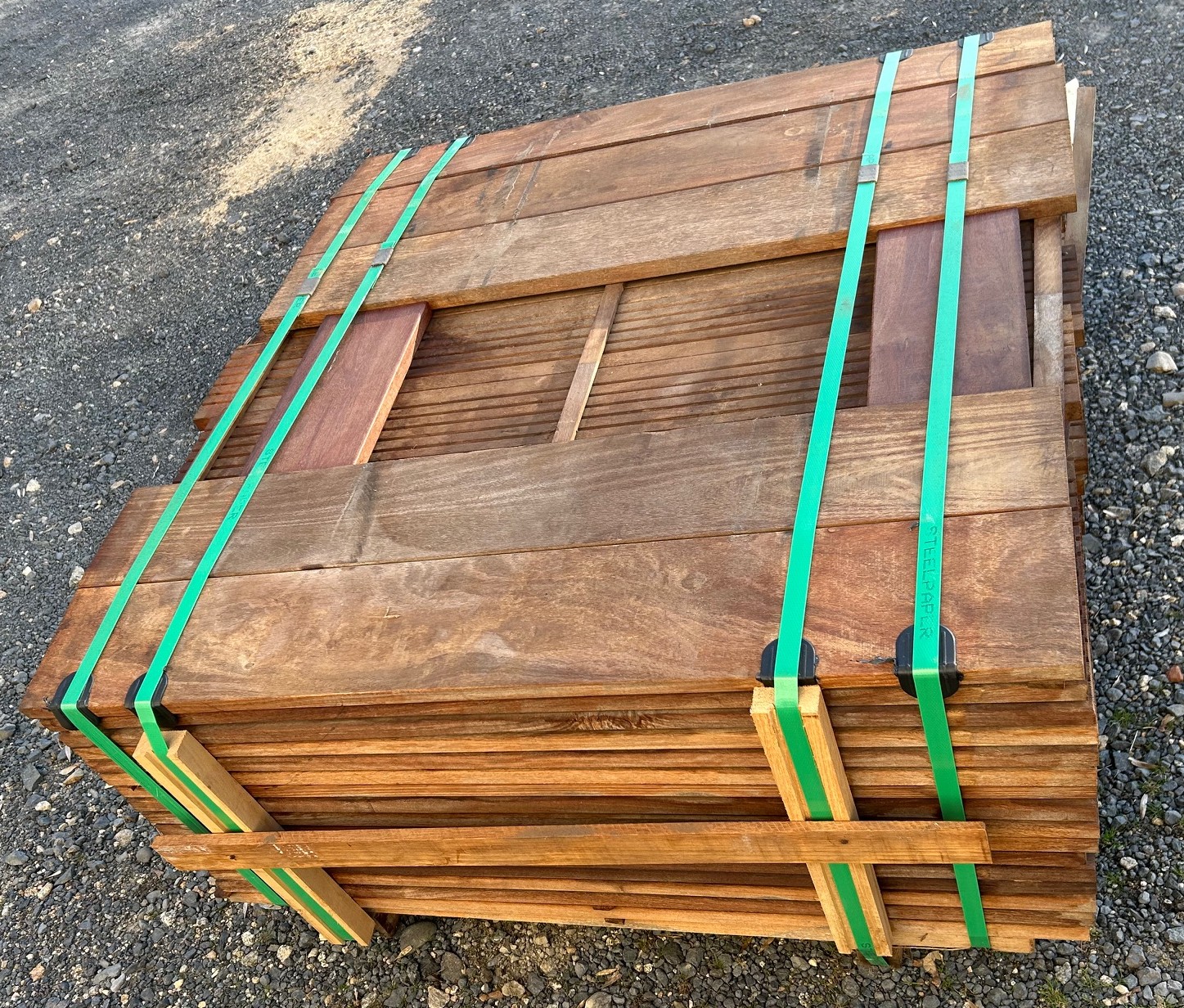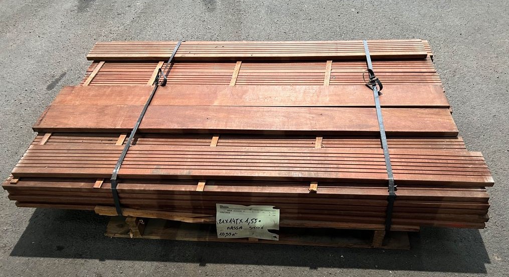 lames de terrasse en MUIRACATIARA (ou tiger wood) classe 4 bois très résistant, sans nœud, 2 faces lisses