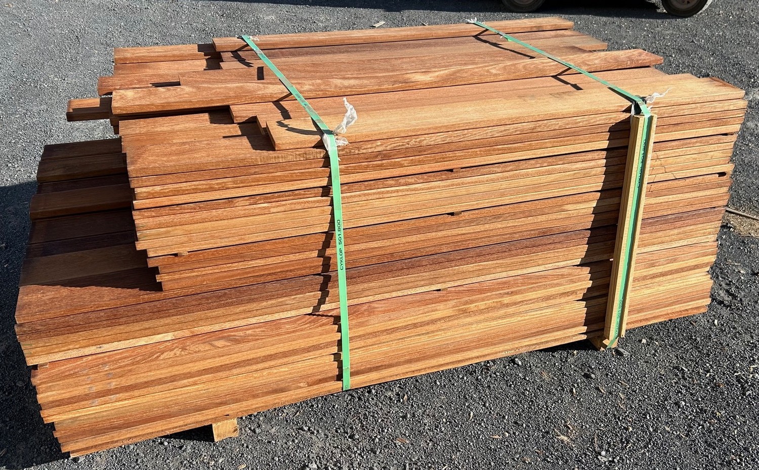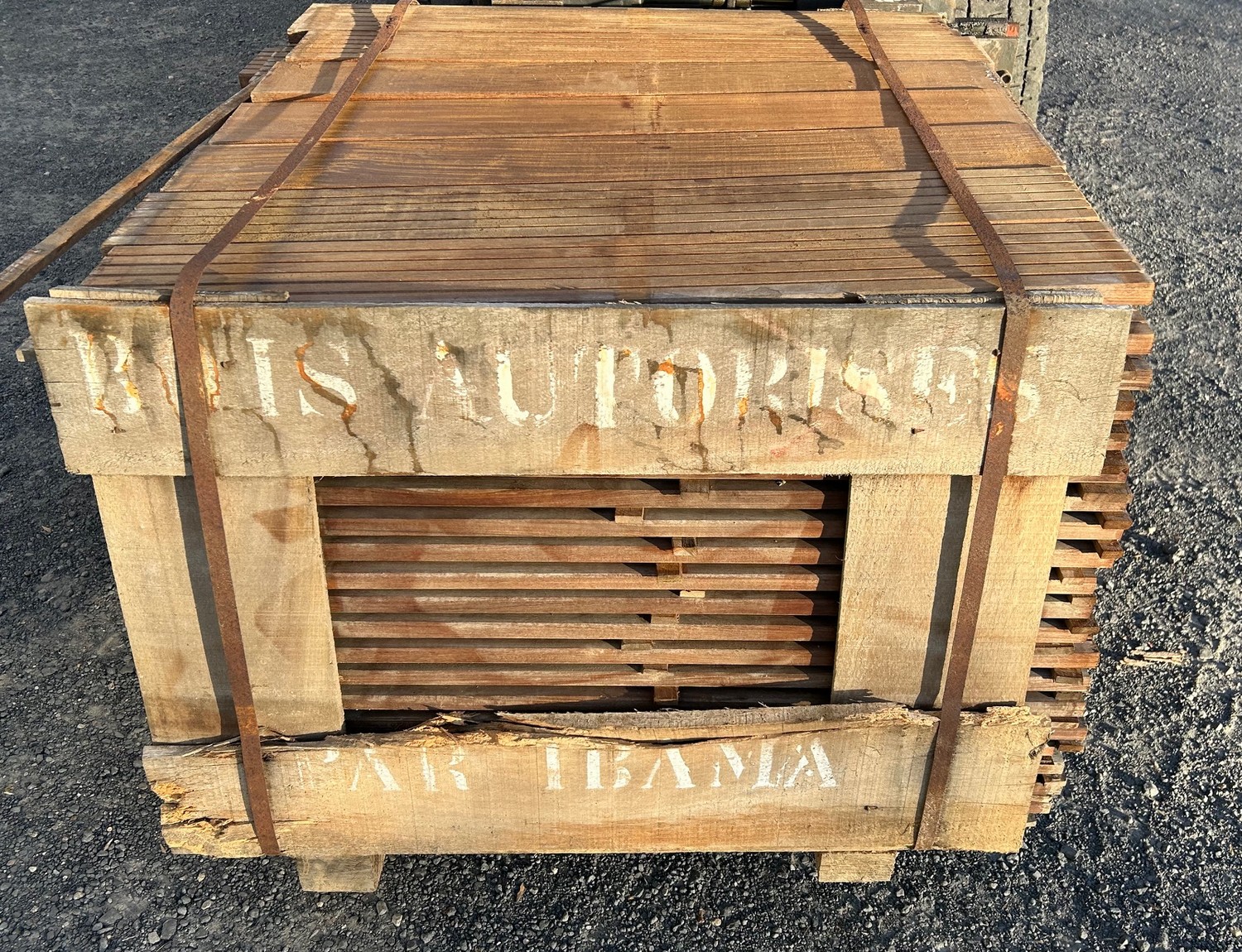 * lot de 43.65 m² : lames en 25 x 100 mm au prix de 2 000 euros TTC (lot indivisible soit 45.81 €/m² TTC) – le lot se compose de 13.49 m² en lames de 1.55 m + 30.16 m² en lames de 1.85 m