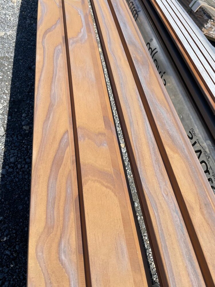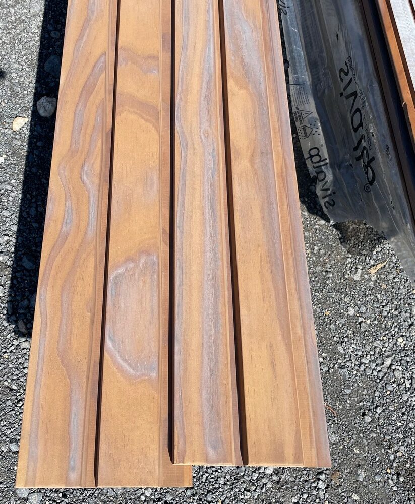 – lot de 15.40 m² à 750 € TTC (soit 48.70 € TTC / m²) Faux Claire Voie Abouté, brossé, saturé gris irisé 108 en 27 x 125 mm x 4.40 m (il s’emboite aux extrémités)